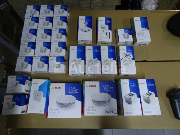Artikelen Merk: BOSCH Hoeveelheid: 30 stuks Detail: . 2 BOSCH Smart Home Slimme Radiatorthermostaten II . 1 BOSCH Smart Home Kamerthermostaat . 2 BOSCH Rookmelder II rookmelders . 15 BOSCH Smart Home armatuur/rolluik/jaloezie bediening . 1 set van 2 BOSCH Smart Home II Plus deur-/raamalarmsensoren . 4 sets van 3 BOSCH smart home deur-/raamsensoren . 2 BOSCH Slimme Stekkers Stekker Compact - 2990 w . 1 Relais smart BOSCH Smart Home . 1 BOSCH 8750000396 schakelaar . 1 BOSCH Schakelaar II Winkelwaarde van de kavel: 2.248 € Artikel Conditie: Nieuw Verzending: Tarief B