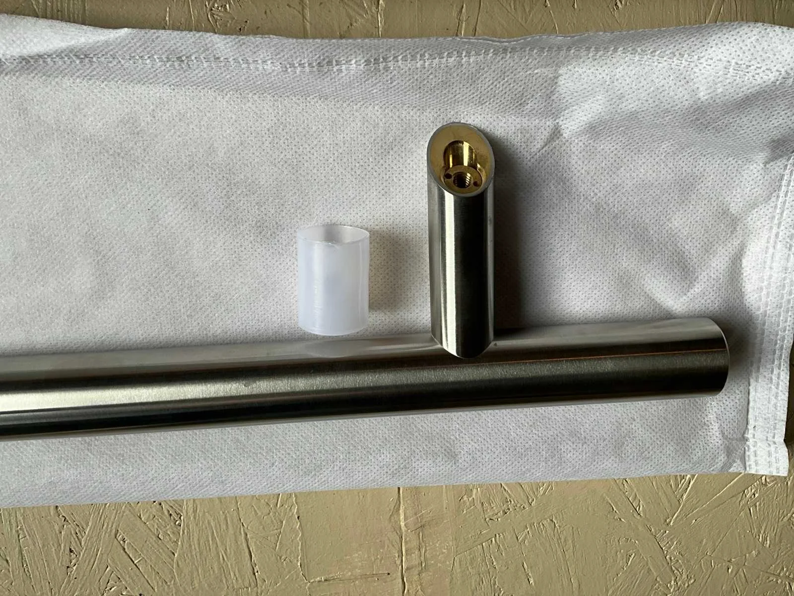 AISI 316 deurgreep in roestvrijstaal met schuine voeten Diameter 30mm. Asmaat 300mm. Totale lengte 500mm. T-model. Inclusief bevestigingsmateriaal. Kan gemonteerd worden op hout, PVC en aluminium Nee