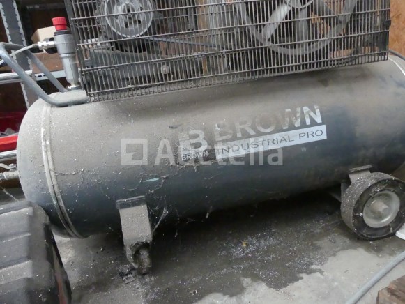 Compressor Merk: Bruin Model: ST100 Spanning: 230V driefasig Lengte: 170 cm Breedte: 45 cm Hoogte: 110 cm Vermogen: 5,5 PK Inhoud: 100 liter Status: Functioneel op Inventarisatiedag De compressor heeft tijdens de inventarisatie geen grondige inspectie ondergaan en kan niet-zichtbare defecten vertonen Op wielen Opmerkingen: Aanbevolen bezoek