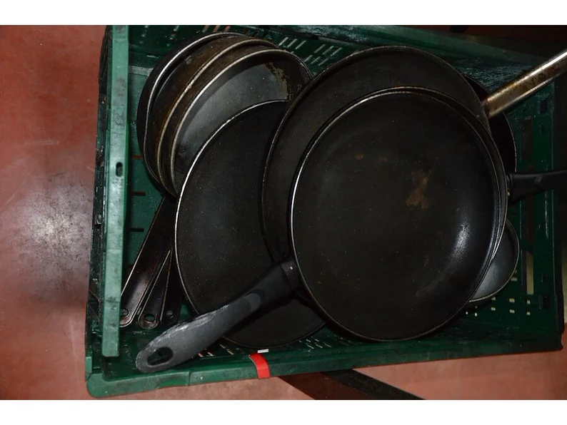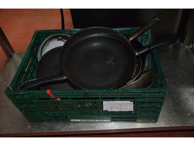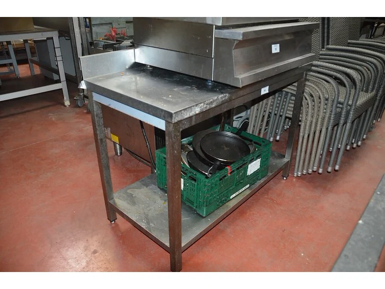 Inox werktafel 1,20 m, 10 steelpannen (19,28)