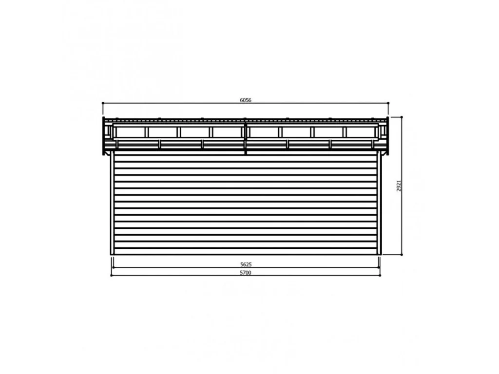 De garage torino met dubbele houten deur,afmetingen: 3600 x 5700 x 2921mm,fundament:3600 x 5700mm,opervlakte:20.88m2,binnenoppervlakte 20.06m2,wanddikte 28mm,type dak:zadeldak met zwarte roofing,oppervlakte:onbehandeld te behandelen 45m2,gratis levering aan huis