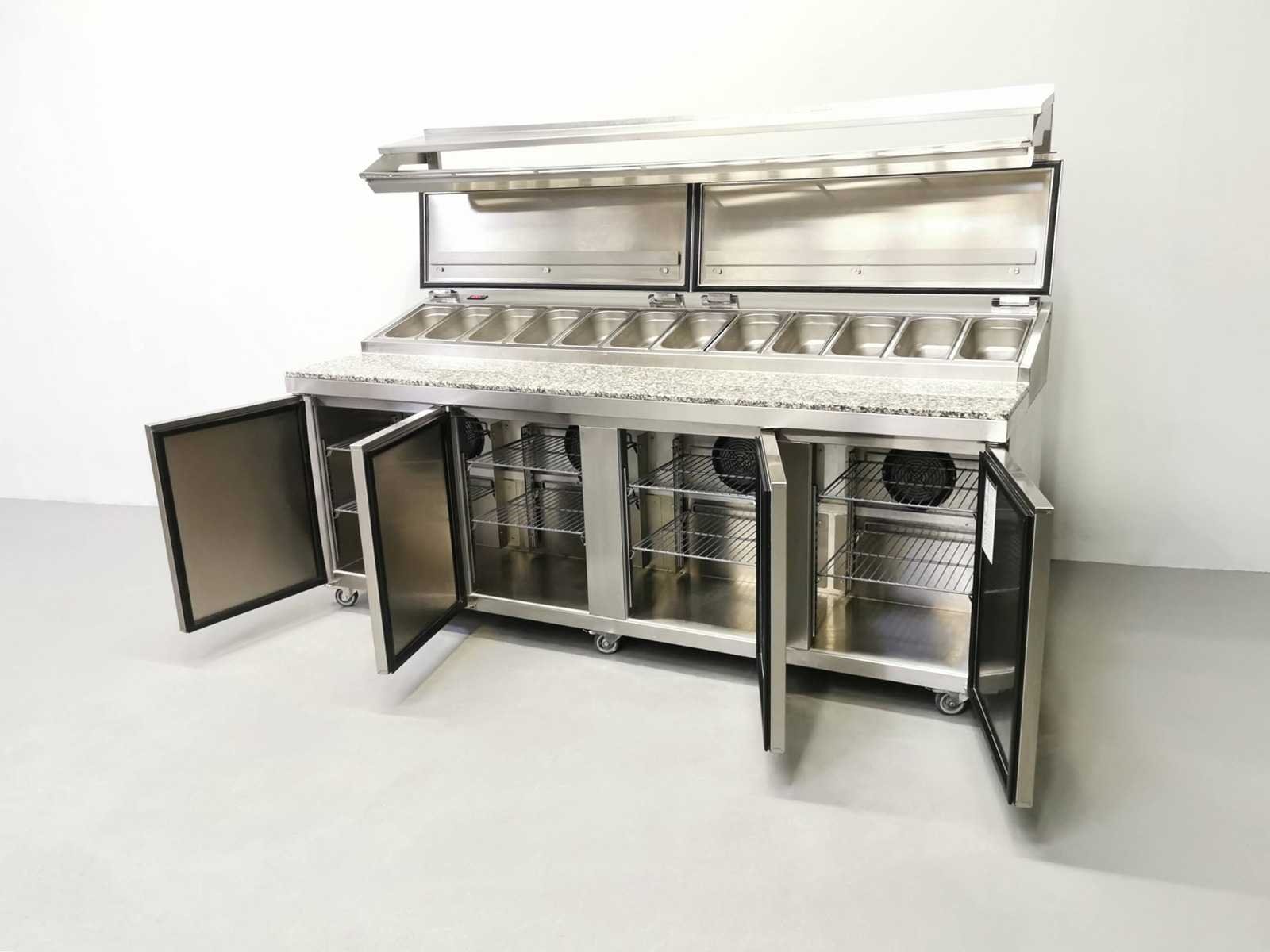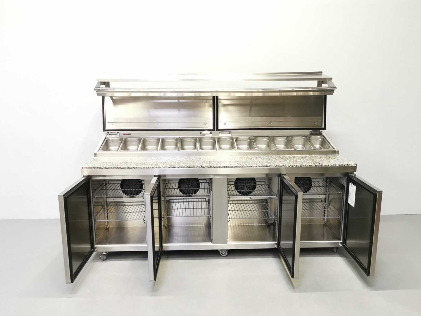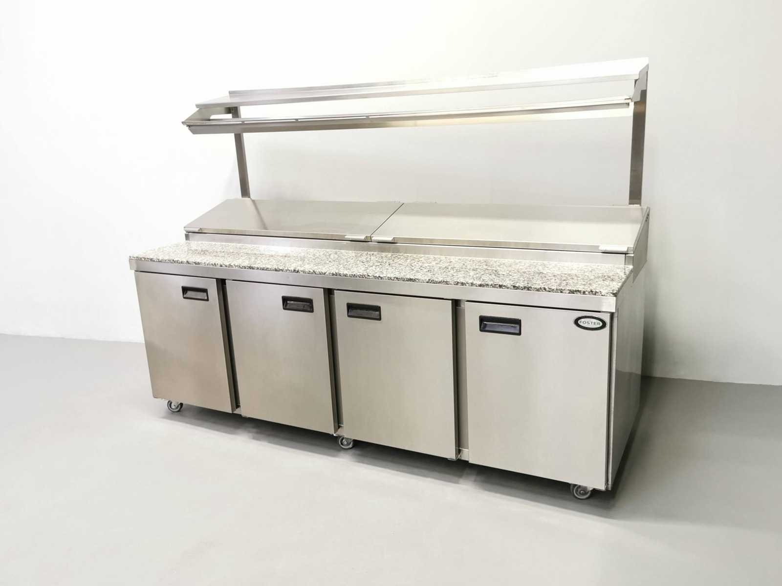 Uitgerust met roestvrijstalen schalen, een marmeren aanrechtblad, bovenste plank en bovenste opbergruimte Merk: Foster Type: FPS4GR Totale afmeting L: 230cm Totale afmeting Breedte: 85cm Totale afmeting Hoogte: 165cm Digitale uitlezing: true Ingebouwde koelcompressor: true Rvs: true Capaciteit.: 570l Aansluiting: 230V Mobiel: true