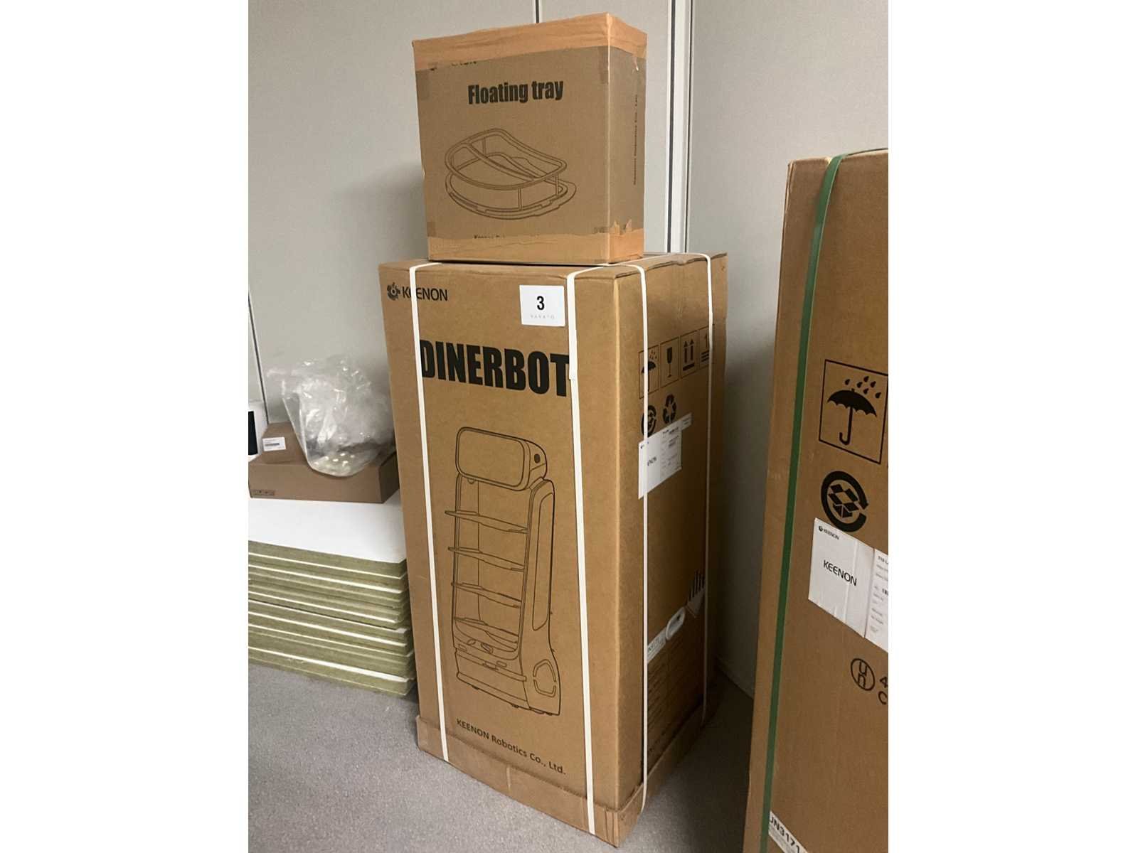 Compleet met T8 floating tray. S/N KRT92310760066 Nee Merk: Keenon Model: T9 laser ( Dinerbot ) Gewicht: 65000g