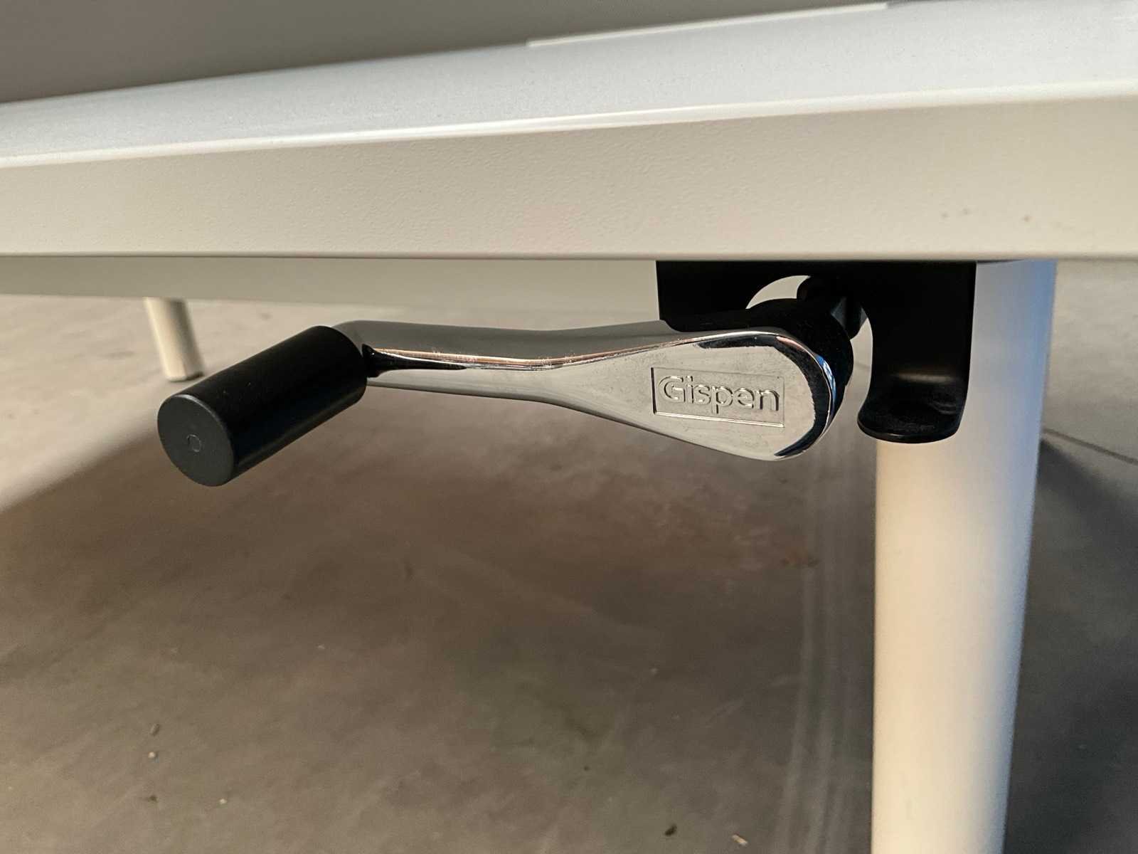 In hoogte verstelbaar. Voorzien van metalen scheidingswand Nee Merk: Gispen Lengte: 170cm Breedte: 180cm Materiaal: Metaal, hout