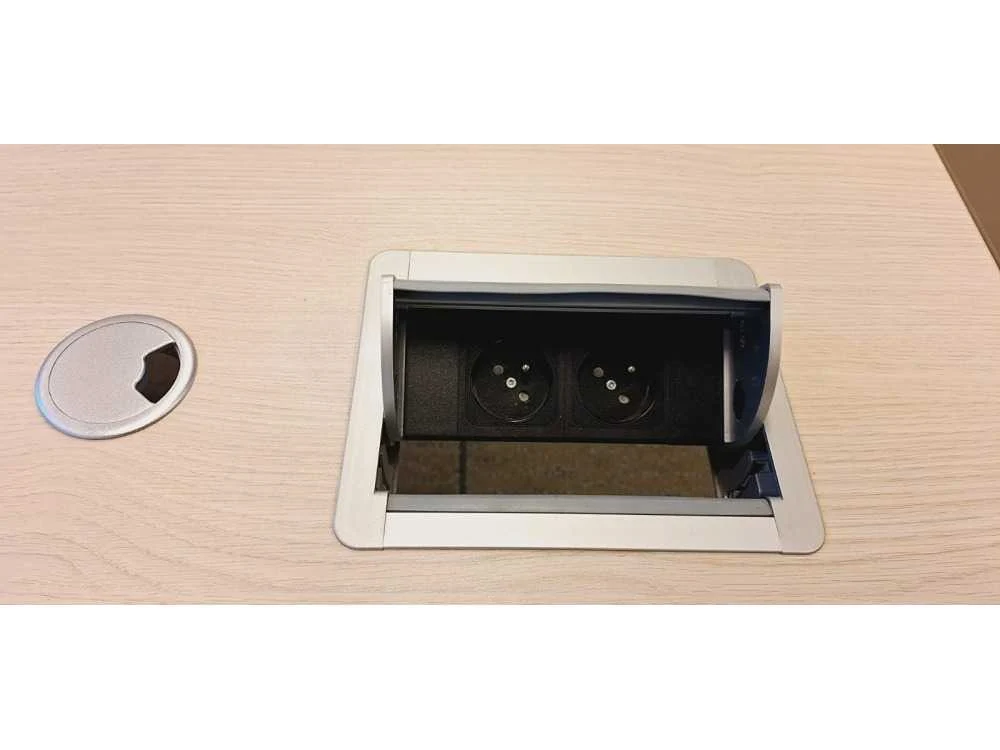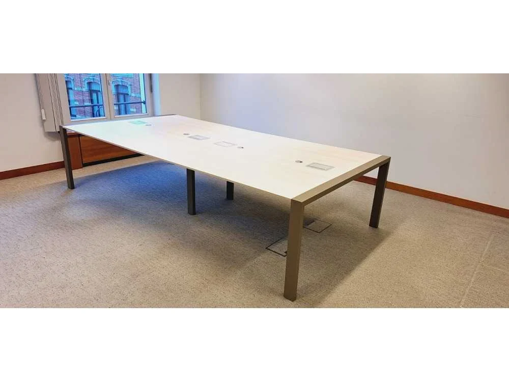Bladen in melamine kleur Ahorn voorzien van 2 x elektrificatie, onderstel in metaal kleur Antraciet voorzien van kabelgoten, afm. 3200 x 1600 x 740 mm (l x d x h), in zeer goede staat, foto's indicatief No Merk: Ahrend Kleur: Antraciet-Ahorn Gewicht: 150kg Lengte: 320cm Hoogte: 74cm Materiaal: Metaal, aluminium, kunststof, hout, melamine Diepte: 160cm