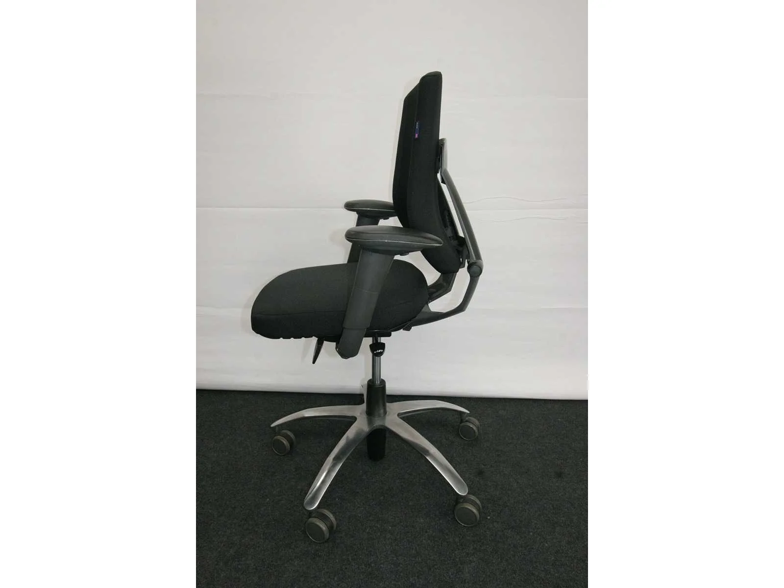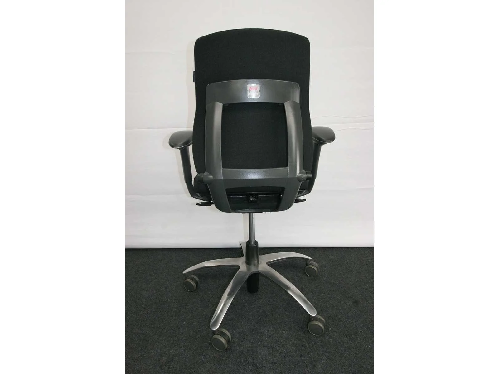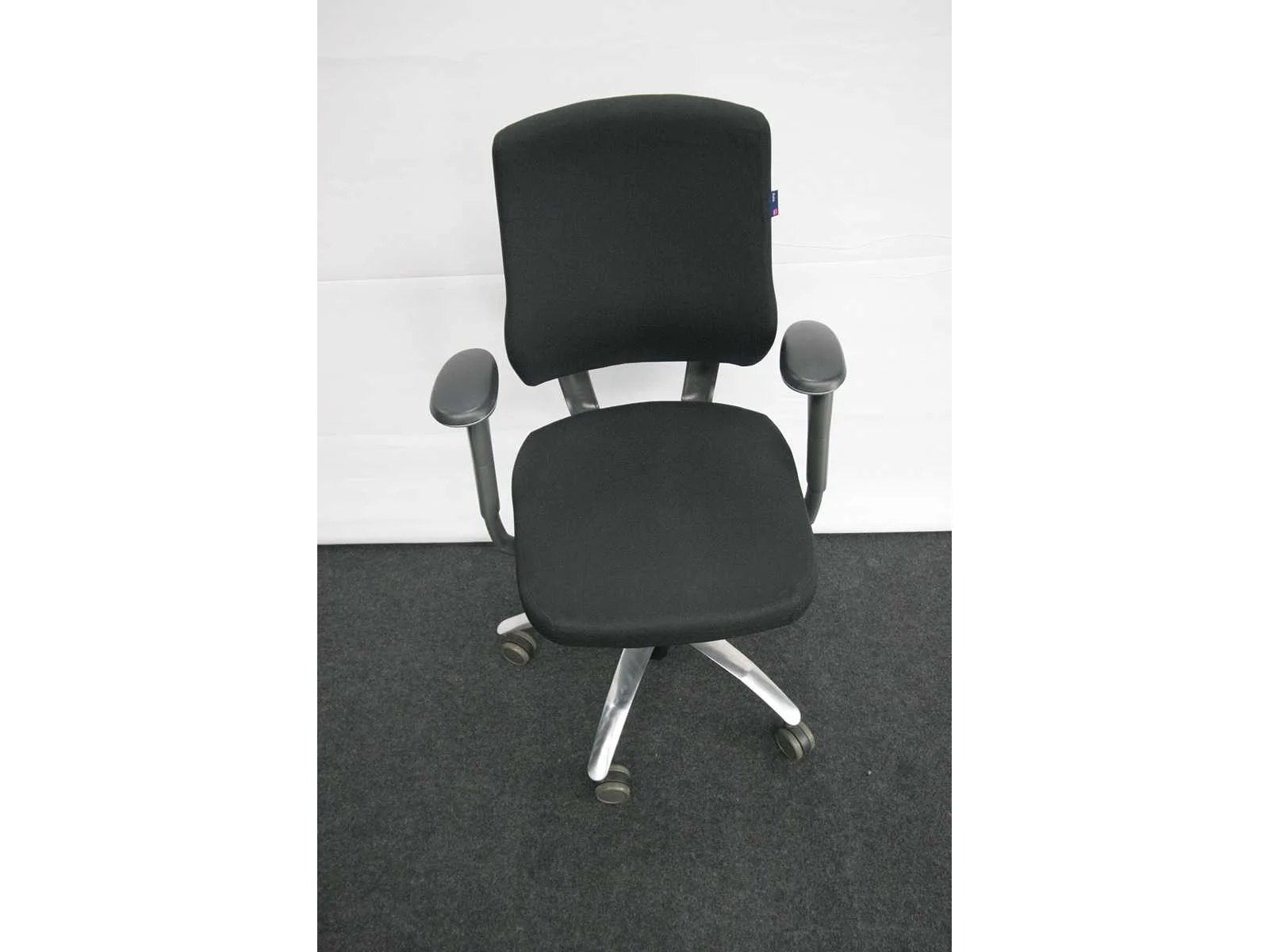 Stervoet in gepolijst aluminium voorzien van PHD zwenkwielen (ook geschikt voor delicate vloeren), bekleding in stof kleur Zwart, in hoogte verstelbaar, synchromechanisme met gewichtsinstelling, verstelbare rugleuning, technisch nazicht en onderhoud gehad, bekleding chemisch gereinigd, lichte gebruikssporen mogelij, foto's indicatief No Merk: BMA Type: AXIA Profit Kleur: Zwart Gewicht: 30kg Breedte: 70cm Hoogte: 100cm Diepte: 70cm Materiaal: Metaal, aluminium, kunststof, stof
