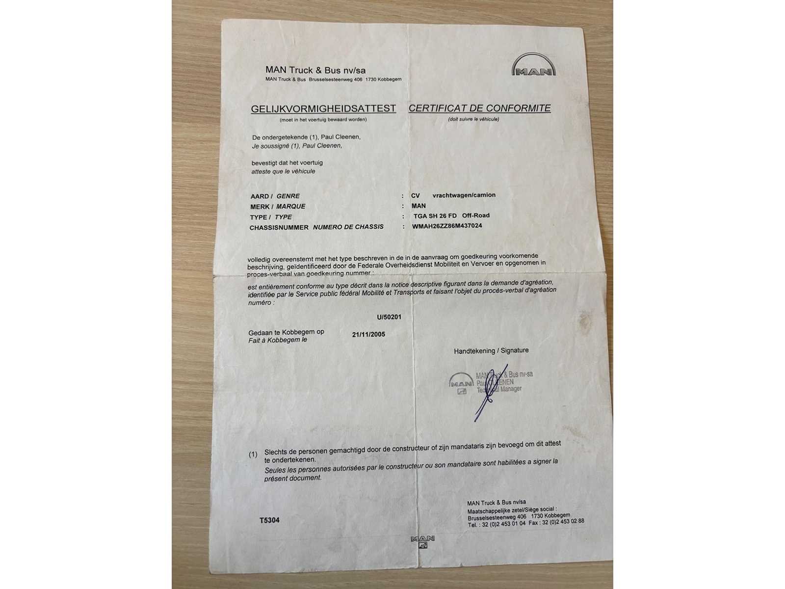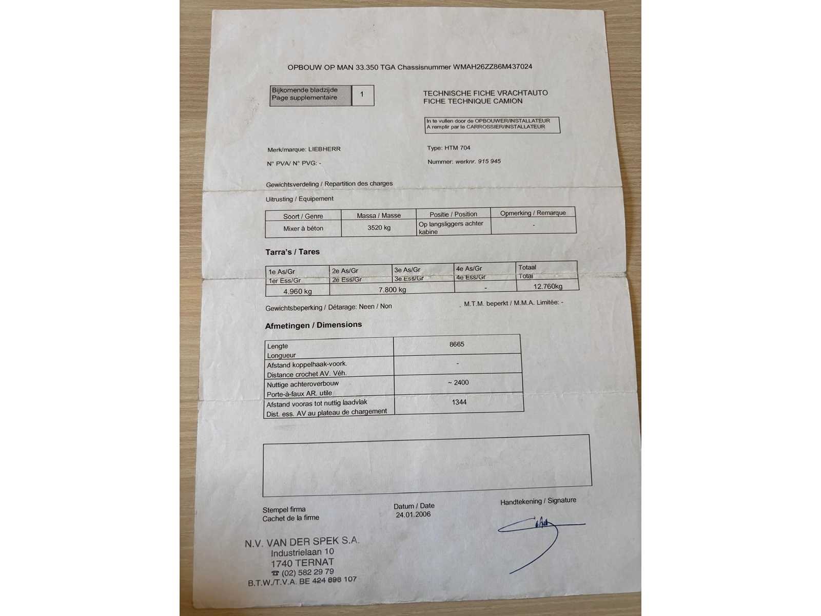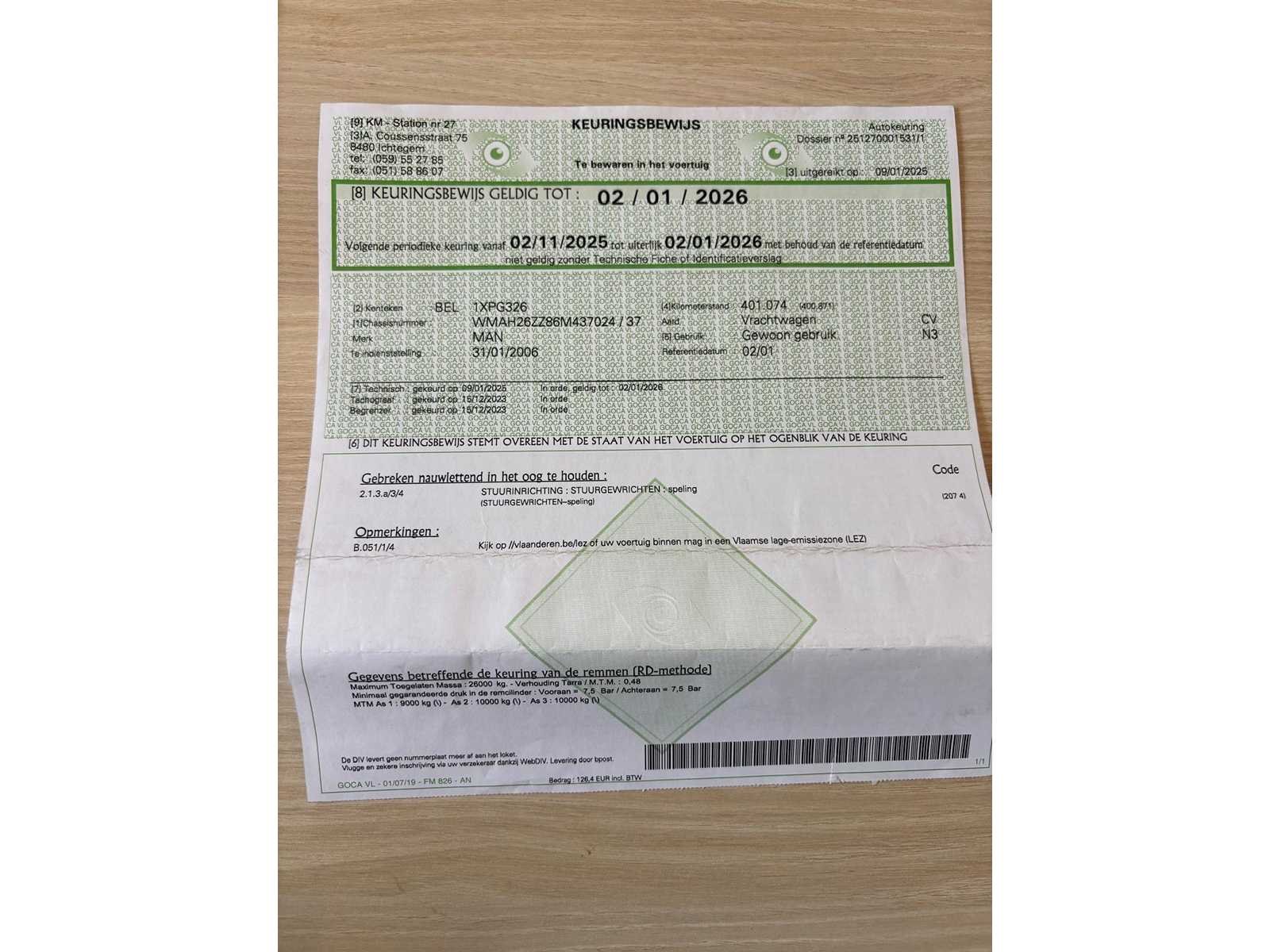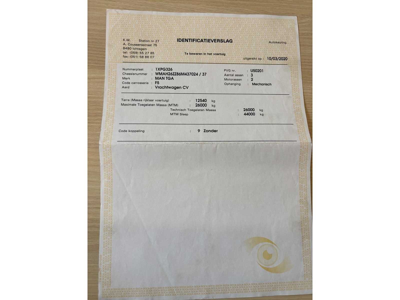 Nee Merk: MAN Type: TGA 33.350 Bouwjaar: 2006 Chassisnummer VIN: WMAH26ZZ86M437024 Kilometerstand bij opname: 401157km Aantal assen: 3 Fuel Type: Diesel Laadvermogen: 12760kg Aantal sleutels: 2 Eigen gewicht: 13010kg Startinformatie: Start zonder problemen Afgelezen kilometerstand: 401157km Nationaliteit documenten: België Kentekenpapieren compleet?: true Aantal zitplaatsen: 2 Zelf rijdend exporteren: Mogelijk Handgeschakelde versnellingsbak: true Diesel: true