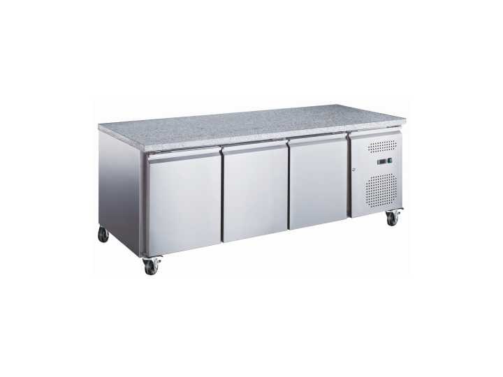 Deze granieten gebaktoren maakt je leven makkelijker! Dankzij de grote afmetingen kun je al je bereidingen op één gekoelde tafel bewaren. Met het grote aanrecht heb je genoeg ruimte en comfort om je voorbereidingen te treffen. Een granieten werkblad stelt je in staat om schoon te werken zonder angst voor krassen, krassen en bultjes. Non Model: Tour pâtissier réfrigéré 3 portes en granit Vermogen: 365W Spanning: 230V Gewicht: 152kg Lengte: 202cm Breedte: 80cm Hoogte: 85cm Materiaal: Roestvrij staal/ Gegalvaniseerde achterkant