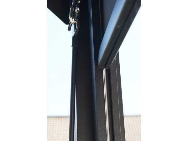 Windvaste ZIP screen (jaloezie) biedt bescherming tegen wind, zon of regen (en insecten); past op terrasoverkapping met lamellendak LUXE; topkwaliteit, weegt 32kg (of meer); kwalitatief aluminium; zwarte structuur poederlak (korrel); inox/RVS (roestvrij staal) inbus schroeven No Merk: SolidCube Model: Manueel Kleur: Antraciet Gewicht: 32kg Lengte: 300cm Hoogte: 230cm Materiaal: Aluminium