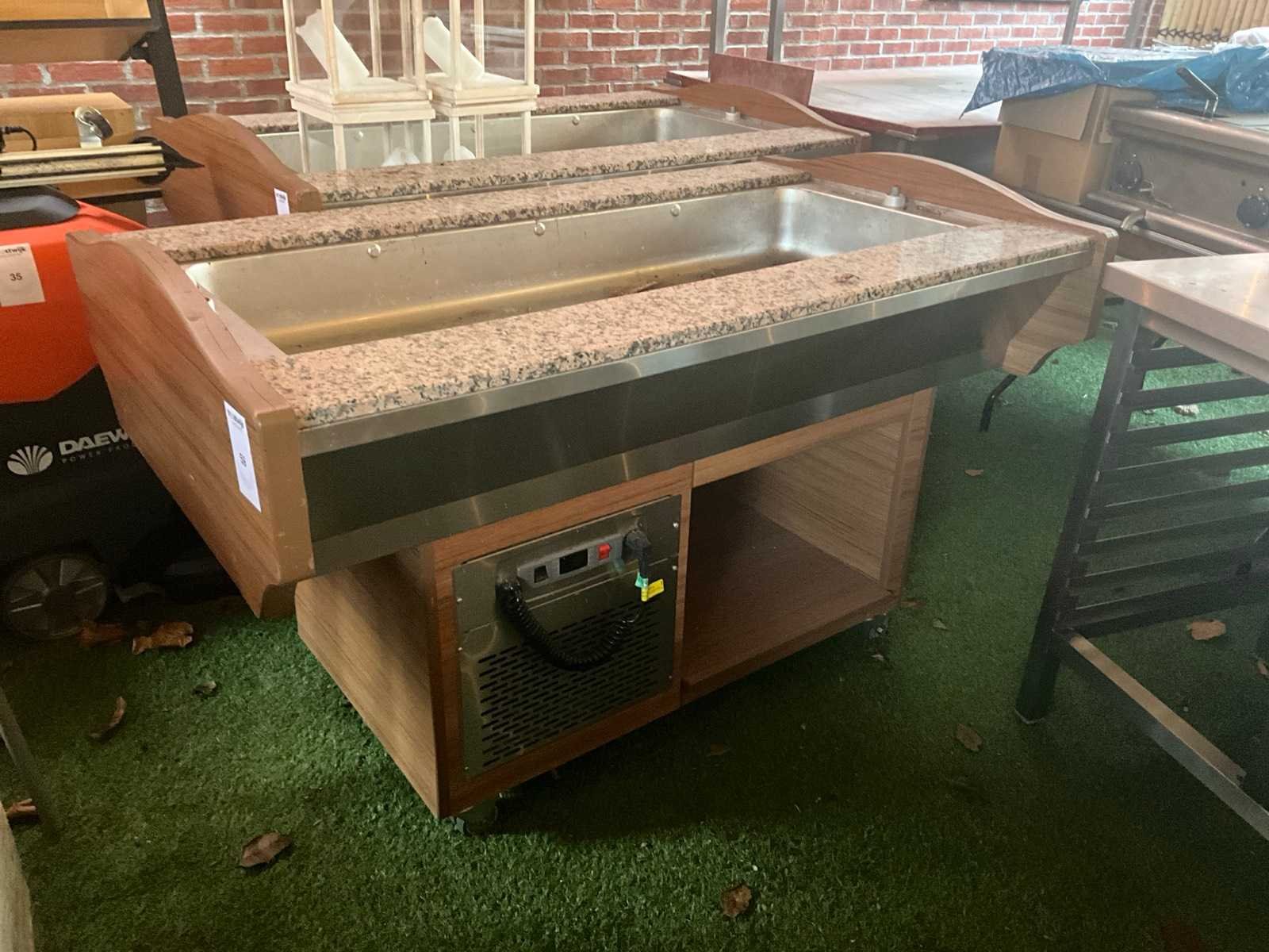 Voorzien van rvs kuip, mobiele opstelling, marmeren blad Nee Ingebouwde koelcompressor: true Aansluiting: 220V Mobiel: true Totale afmeting L: 90cm Totale afmeting Breedte: 151cm Totale afmeting Hoogte: 93cm