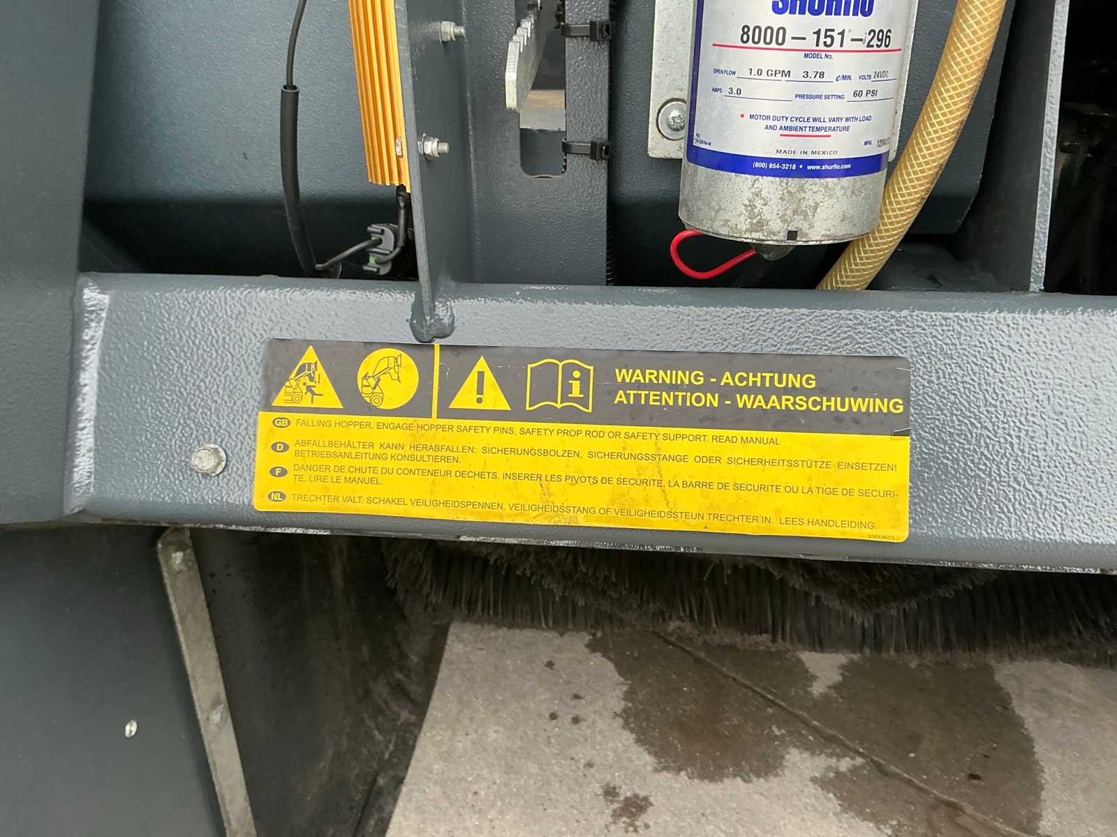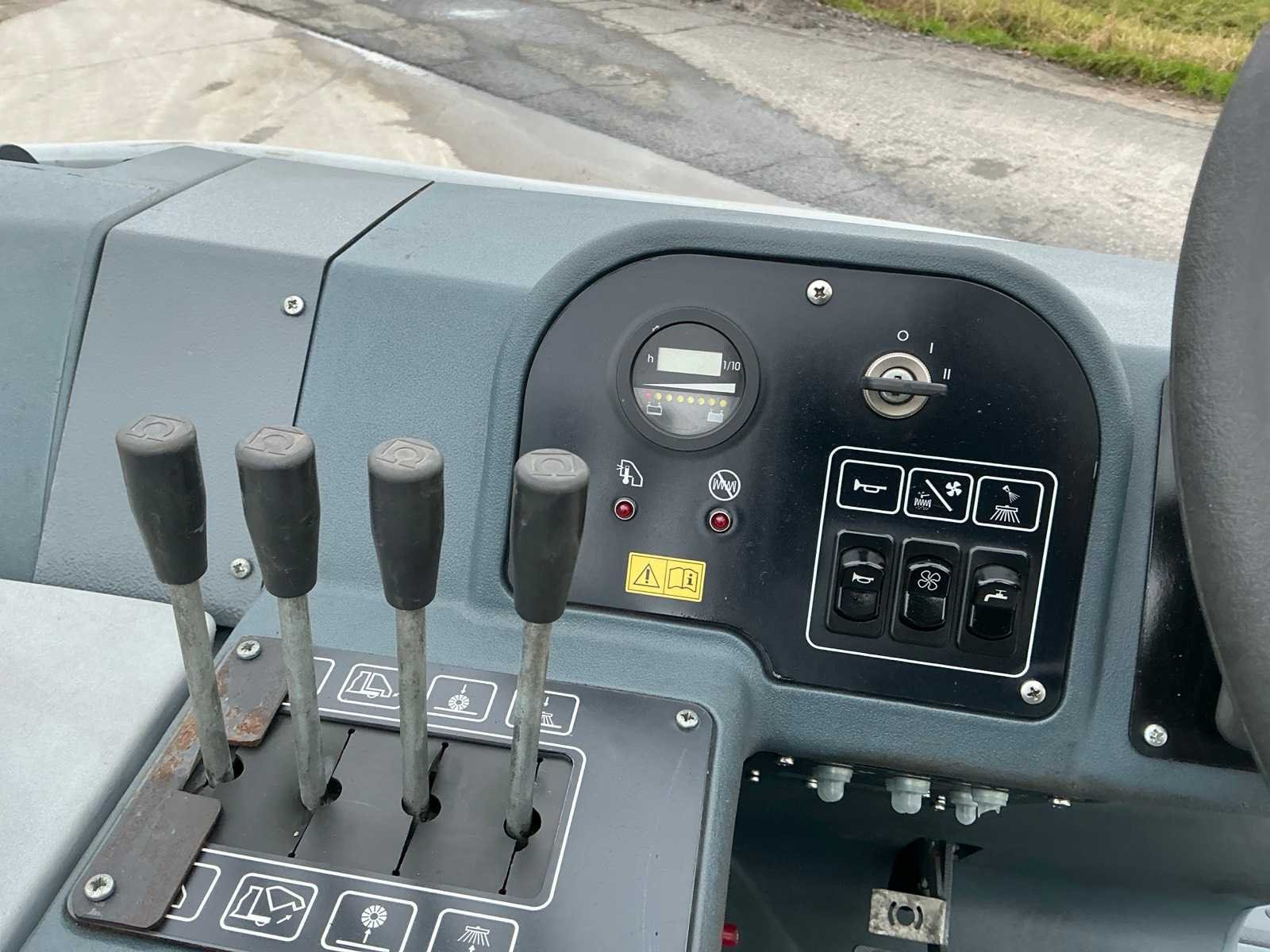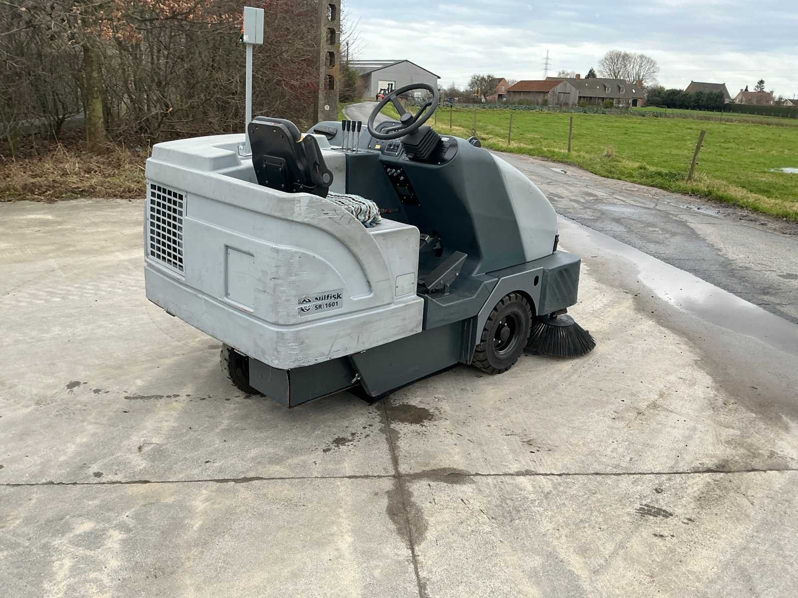 2 zij borstels , water jets , hydraulische kip bak , zwaailicht en vol rubber banden Nee Merk: Nilfisk Type: SR1601 Bouwjaar: 2014 Serienummer: 144400001 Werkbreedte: 1600mm Elektrisch: true Afgelezen urenstand: 750hr Aansluiting: 48V Eigen gewicht: 1660kg Totale afmeting L: 2300mm Totale afmeting Breedte: 1600mm Totale afmeting Hoogte: 1450mm
