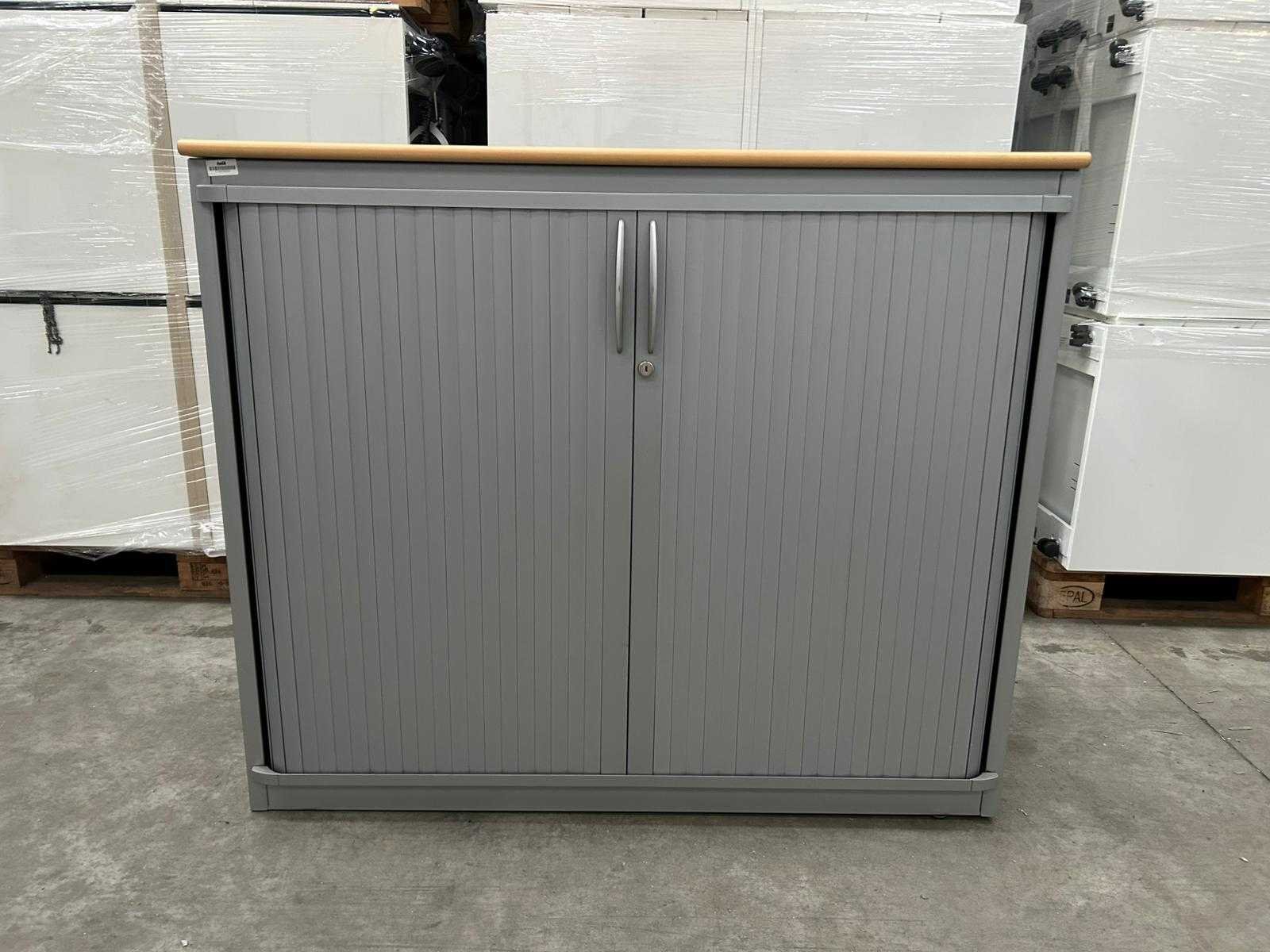 Steelcase Halfhoge Verticale roldeurkast met 2 leggers en ahorn topblad Nee Merk: Steelcase Type: Roldeurkast Kleur: Grijs Gewicht: 40kg Lengte: 120cm Breedte: 46cm Hoogte: 115cm