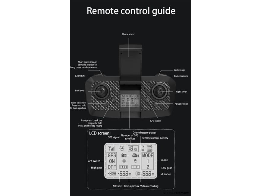 Productspecificaties: Afmetingen (cm): Uitgevouwen: 36 x 29 x 10 cm Gevouwen: 8,5 x 16 x 10 cm Afmetingen kleurdoos: 29 x 9,2 x 21,6 cm Belangrijkste materialen: ABS, hardware, elektronica Kleur: Zilver zwart Gewicht (inclusief verpakking): 808 g Startgewicht van de romp: 318 g Verpakkingsspecificaties: 21,5 x 15 x 18,5 cm Buitendoos specificaties: 46,5 x 43,5 x 57 cm Batterijparameters: 7,4 V 3400 mAh batterij (gewicht: 90 g) Oplaadmethode afstandsbediening: USB-kabel Oplaadmethode batterij: USB-kabel USB-oplaadtijd: Ongeveer 60 minuten Vliegtijd: Ongeveer 23 minuten Afstandsbedieningsafstand: Ongeveer 8000 meter (interferentievrije omgeving) 5G WIFI beeldoverdrachtsafstand: Ongeveer 500 meter (storingsvrije omgeving) Vluchtomgeving: Binnen/buiten Frequentie afstandsbediening: 2,4 GHz PTZ: ESC-afstandsbediening, 90 graden omhoog en omlaag GPS: Dubbele modus (GPS/GLONASS) Hekwerk: Hoogte 120 meter/afstand 300 meter verstelbaar Motorspecificaties: Borstelloze motor 1504 Cameraresolutie (5G-versie): Beeld: 8K (7680 x 4320 pixels) Video: 4K (3840 x 2160 pixels) Onderste opname: Foto: 1080P (1920 x 1280 pixels) Video: 720P (1280 x 720 pixels) Hekhoogte: 120 meter Hekafstand instelbaar tot 300 meter Lichtkleuren: Blauw/groen/rood Visuele functie: Positionering van de optische stroom aan de onderkant van de romp Producteigenschappen: 360° allround laser-obstakelvermijding GPS-positionering en optische stroompositionering dubbele modi Schakelen tussen dubbele camera's Borstelloze motor 8K pixels Elektrisch traploos verstelbare camera tot 90 graden Niveau 7 windweerstand Terugkeer naar huis bij controleverlies LCD-afstandsbediening Lage batterijwaarschuwing Terugkeer naar huis met één klik Batterijduur: ongeveer 23 minuten 5G high-definition beeldoverdracht Intelligent volgen Gebarenfotografie Video 50x zoom op het scherm Omringd door bezienswaardigheden Paklijst: Drone: 1 stuk Afstandsbediening: 1 stuk Obstakelvermijdingskop: 1 stuk Lichaamsbatterij: 1 stuk Opbergtas: 1 stuk Kleurvak: 1 stuk Instructies: 2 stuks Reserve ventilatorbladen: 4 stuks USB-oplaadkabel: 1 stuk Schroevendraaier: 1 stuk